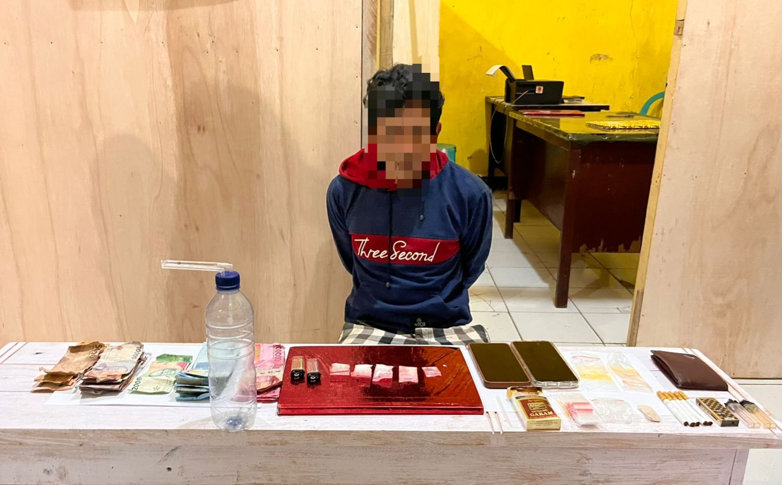 “Dalam penggeledahan tersebut, Tim Opsnal mendapati barang bukti berupa empat lembar plastik klip berisi serbuk kristal yang diduga sabu dengan berat kotor 4,25 gram dan berat bersih 3,45 gram,” ungkap AKP Masdidin.