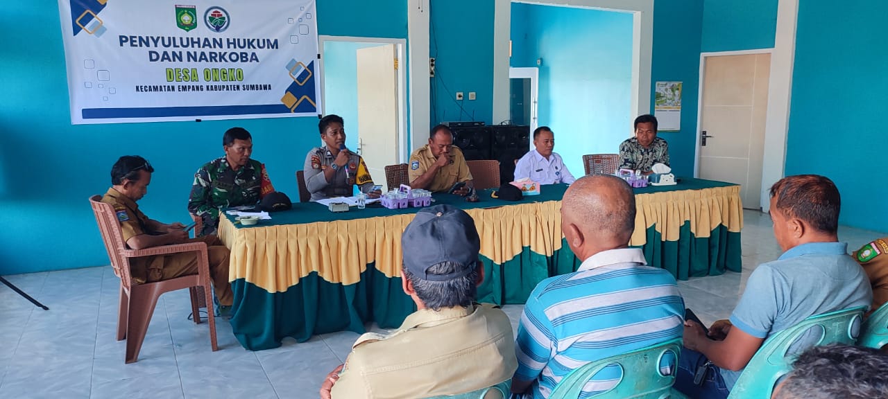 Sumbawa Besar –NTB, Bhabinkamtibmas Desa Ongko, BRIPTU Dobi Kelana, melaksanakan kegiatan penyuluhan terkait hukum dan bahaya narkoba yang diadakan oleh Tim Pencegahan Narkoba BNN Kabupaten Sumbawa.