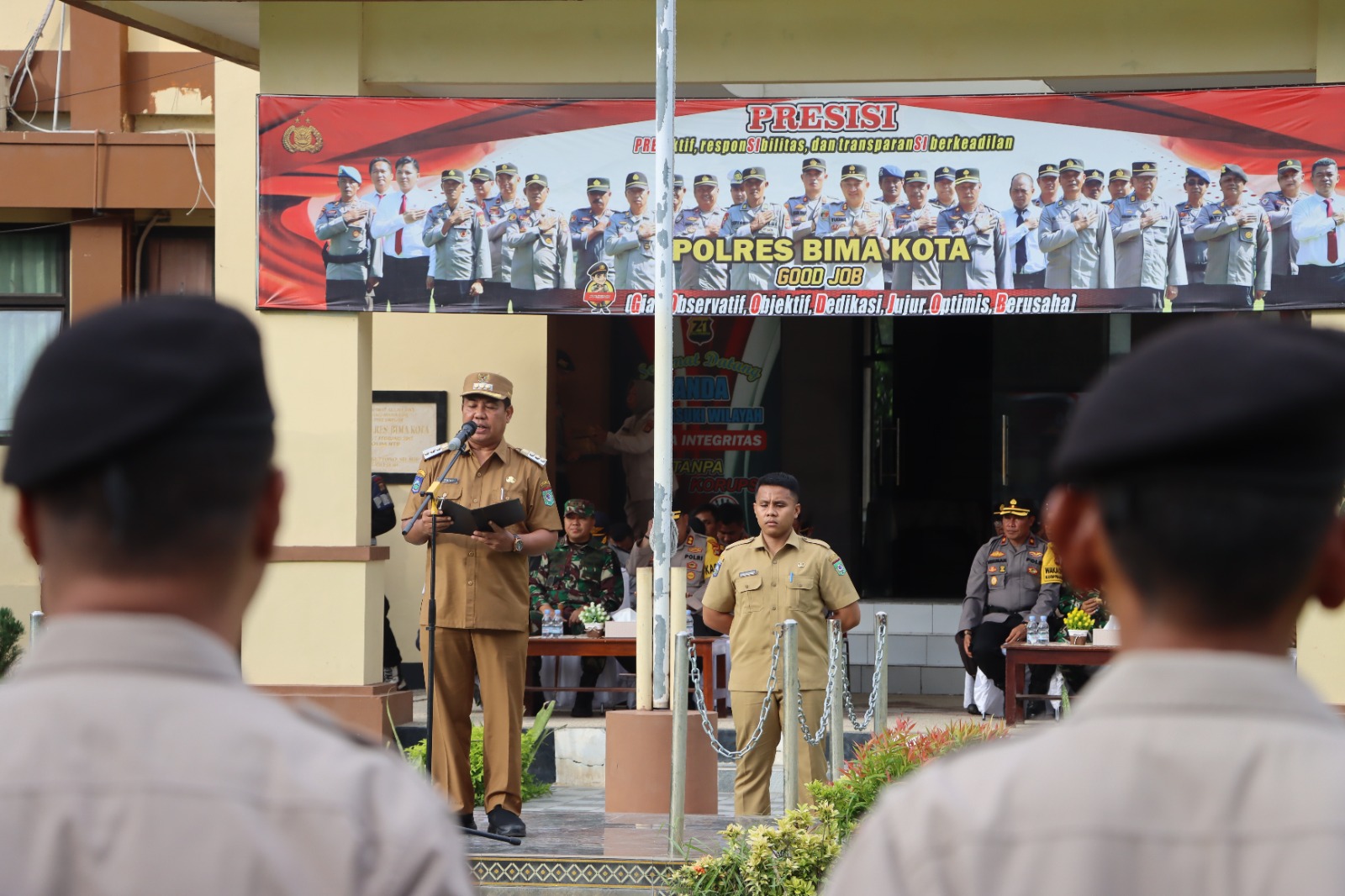 Apel ini dipimpin langsung oleh Penjabat (Pj) Wali Kota Bima, H. Mukhtar, dan dihadiri sejumlah pejabat penting, termasuk Kapolres Bima Kota AKBP Yudha Pranata, S.I.K., S.H., Dandim 1608/Bima Letkol Inf Andil Lulianto, serta perwakilan dari berbagai instansi seperti Yon C Sat Brimobda Polda NTB, Sat Pol PP, dan Dishub Kota Bima.