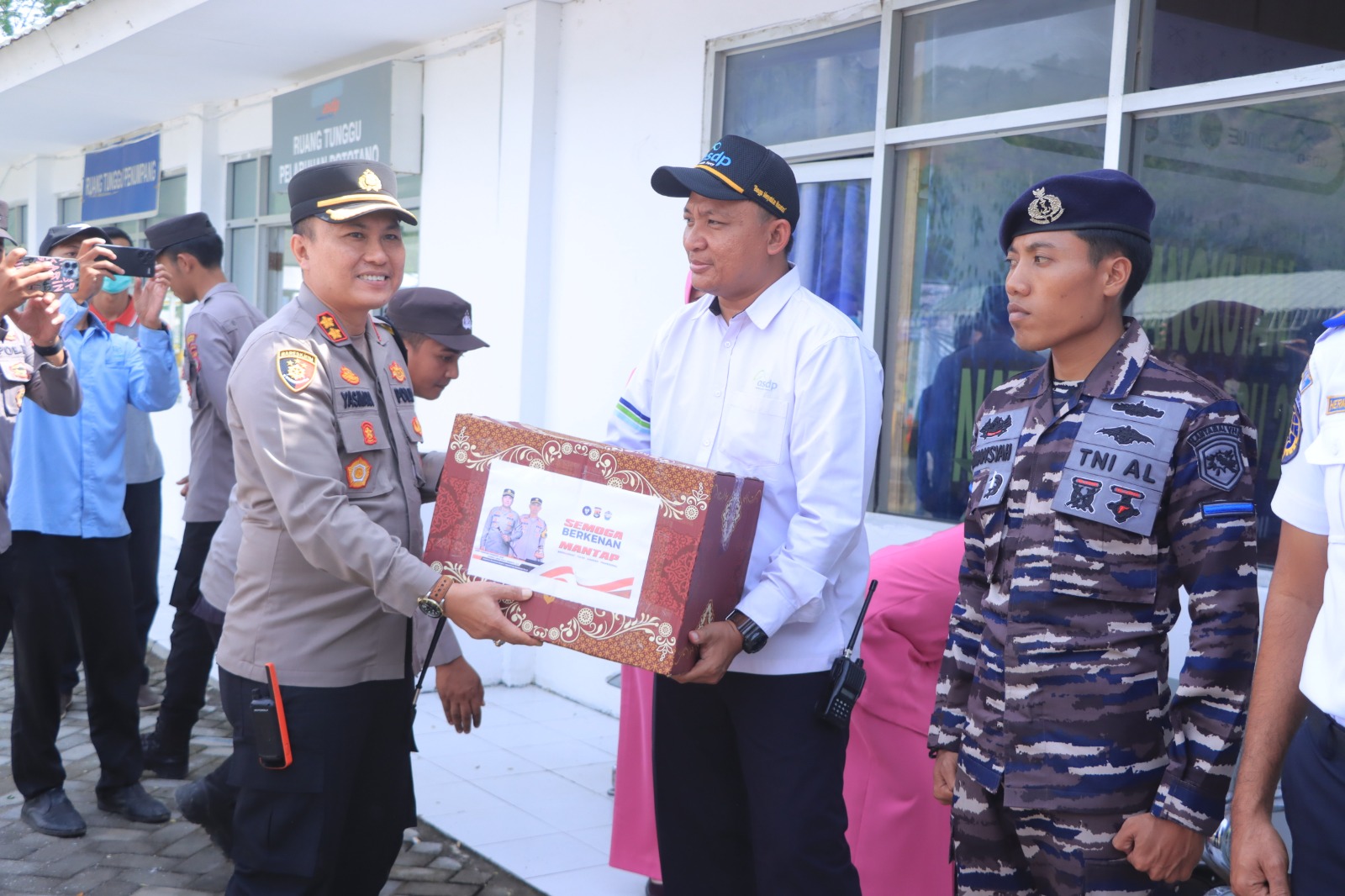 Dalam kunjungannya, Kapolres memberikan dukungan makanan tambahan, nutrisi, dan vitamin kepada petugas Pos Pelayanan Terpadu di Kawasan Pelabuhan Penyeberangan Poto Tano.