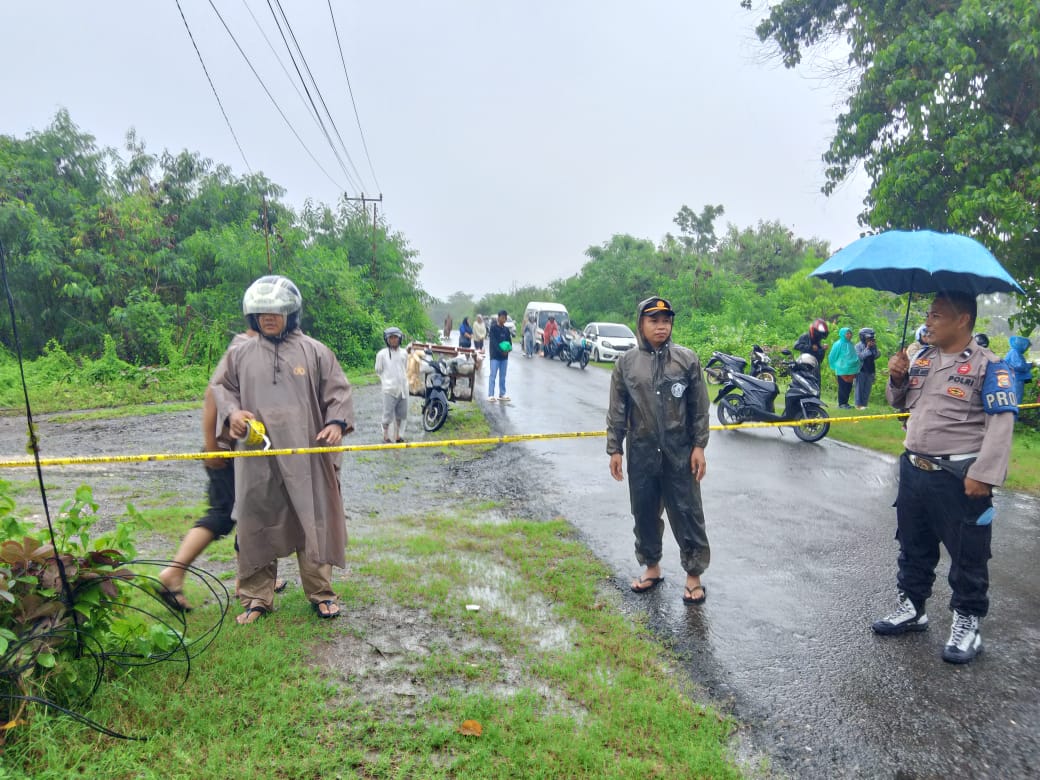 Kapolsek Sekongkang bersama anggota turun langsung ke lokasi jalan yang terputus untuk memasang garis Polisi guna menghindari korban baik akibat banjir maupun antisipasi kecelakaan lalulintas.