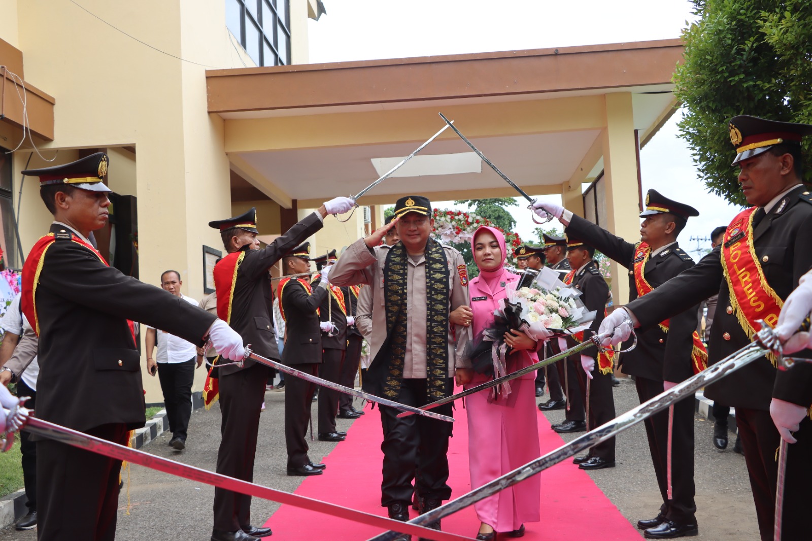Pelepasan ini dipimpin langsung oleh Kapolres Bima Kota AKBP Didik Putra Kuncoro S.I.K., M.Si., dan dihadiri oleh seluruh Pejabat Utama (PJU) serta personel Polres Bima Kota. Acara dimulai dengan prosesi Pedang Pora, sebuah tradisi kehormatan yang penuh makna simbolis untuk menghormati dedikasi dan pengabdian AKBP Yudha Pranata selama memimpin Polres Bima Kota.