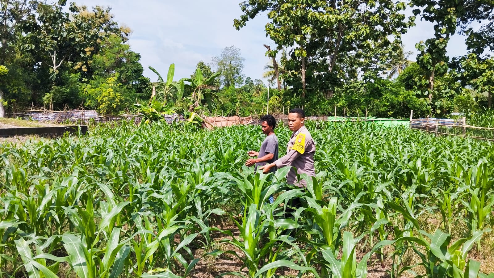 Bripka Ibrahim secara langsung mengunjungi lahan pertanian milik Bapak Arifin, yang memanfaatkan pekarangan rumahnya untuk menanam berbagai jenis tanaman pangan seperti jagung, kacang tanah, dan tanaman lainnya. Dalam kunjungannya, Bripka Ibrahim memberikan motivasi dan dorongan kepada pemilik lahan agar terus berinovasi dalam pengelolaan lahan.