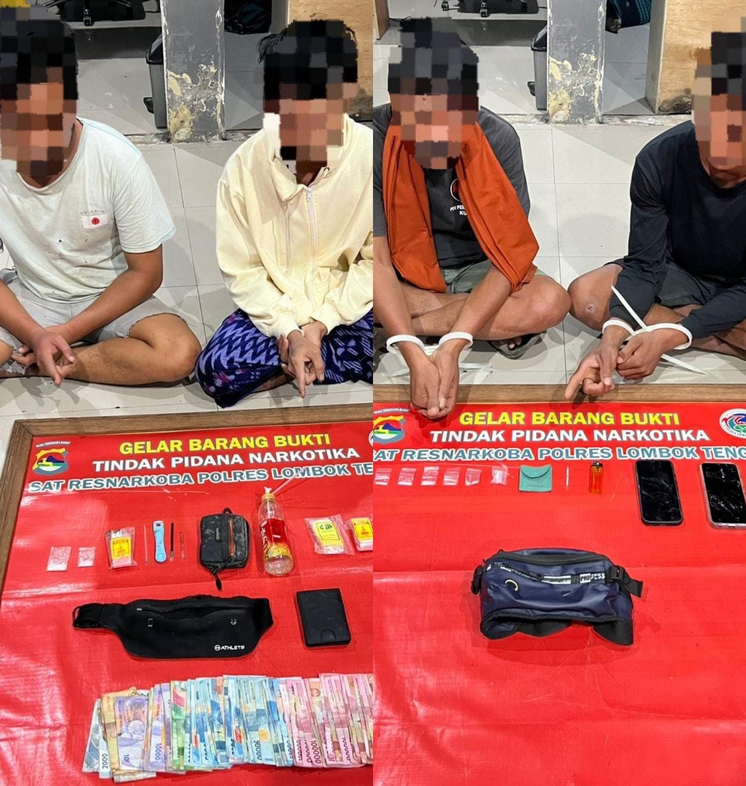 Lombok Tengah, (NTB) – Kepolisian Resor Lombok Tengah, Polda Nusa Tenggara Barat, mengungkap peredaran Narkotika jenis Sabu di Kecamatan Pujut dan Praya Timur dan berhasil mengamankan empat orang terduga pelaku.