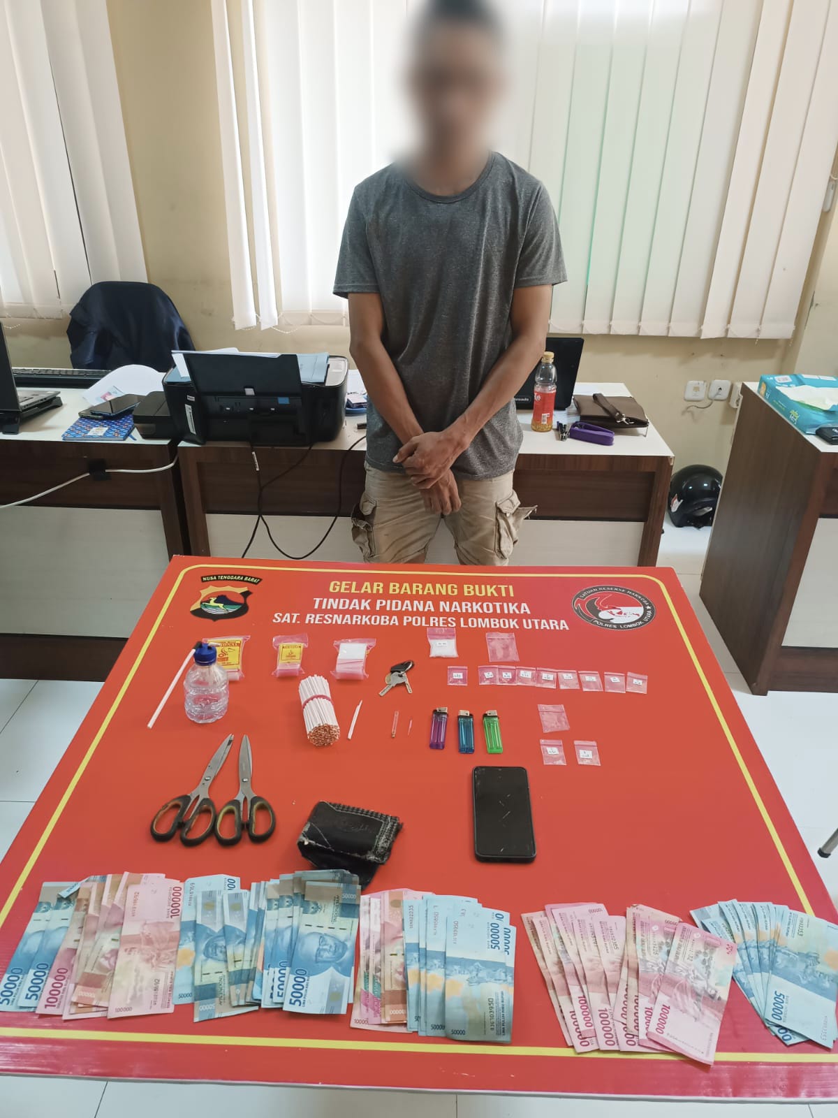 “Saat ini pelaku dan barang bukti sedang menjalani proses penyidikan dan telah ditetapkan tersangka dan dilakukan penyelidikan lebih lanjut oleh Sat Res Narkoba Polres Lombok Utara”.