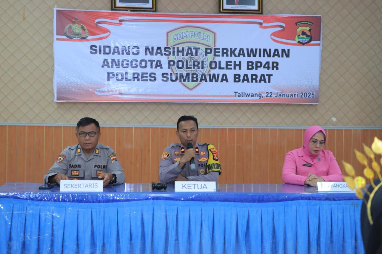 Wakapolres Sumbawa Barat Kompol Sidik Pria Mursita, S.H selaku ketua BP4R memberikan nasihat bahwa tujuan sidang BP4R adalah mendapatkan keabsahan dan hak dalam institusi Polri bagi pasangan serta melengkapi dokumen pra-nikah secara agama dan juga kedinasan. Lebih lanjut menekankan, tujuan mendasar dari pernikahan adalah sakinah mawadah warahmah. Jadi, pernikahan harus didasari niat awal dan membulatkan tekad berumah tangga dengan pilihaannya untuk berumah tangga.