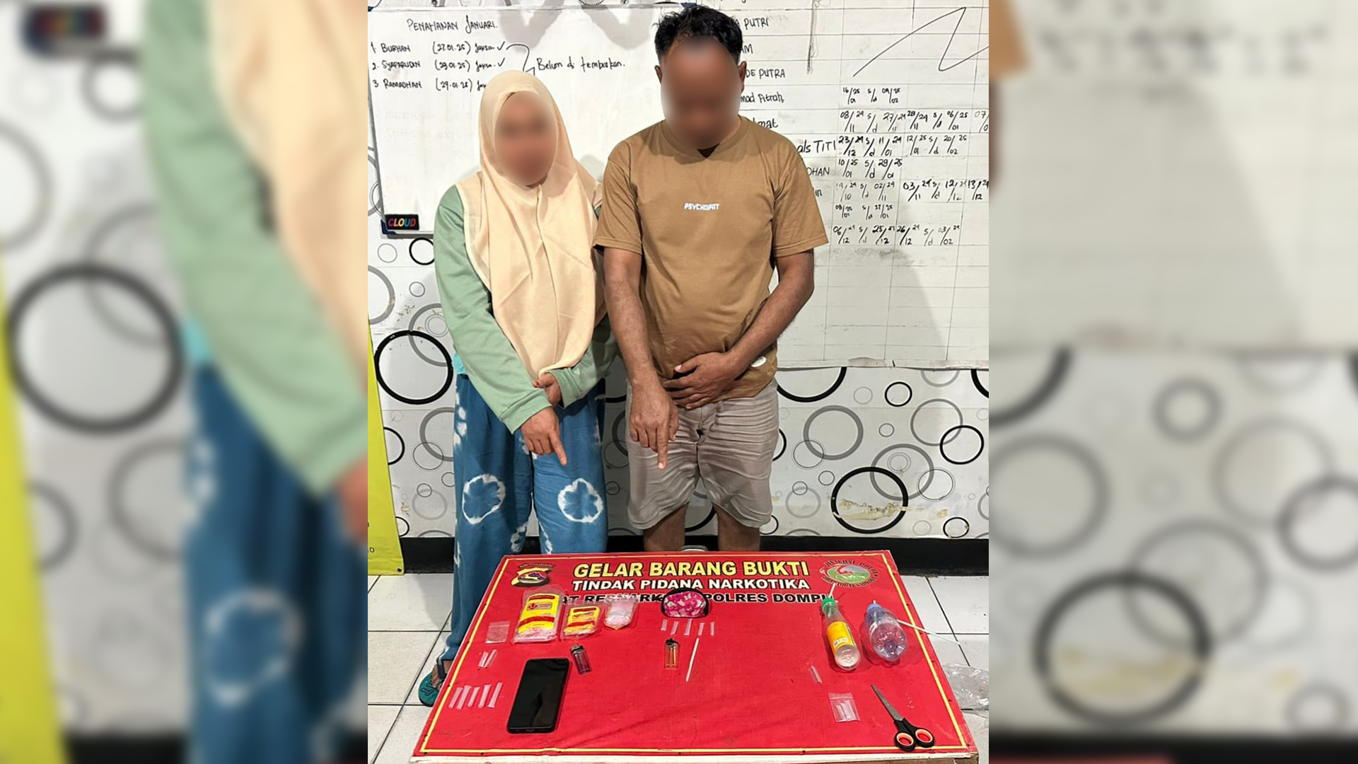 Upaya pemberantasan narkotika terus digencarkan oleh Satresnarkoba Polres Dompu. Pada Rabu, 22 Januari 2025, sekitar pukul 15.35 WITA, Timsus Resnarkoba berhasil menangkap seorang perempuan berinisial A (42) di sebuah kamar kos di Lingkungan Ncera, Kelurahan Simpasai, Kecamatan Woja. Ia diduga terlibat penyalahgunaan narkotika jenis sabu. Suaminya, AH (44), yang semula tidak berada di lokasi, menyerahkan diri beberapa jam kemudian.