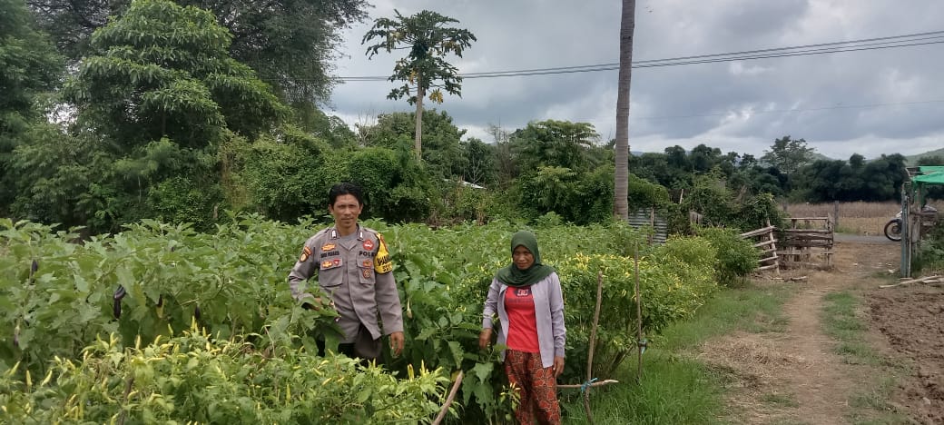 BRIPKA Andi Prabata mengunjungi lahan milik warga yang sedang melakukan pembersihan hama, rumput liar, dan tanaman pengganggu. Dalam kesempatan tersebut, ia memberikan motivasi kepada petani agar terus memanfaatkan lahan secara optimal dengan menanam berbagai jenis tanaman hortikultura seperti cabai, singkong, terong, kacang panjang, tomat, dan ubi.