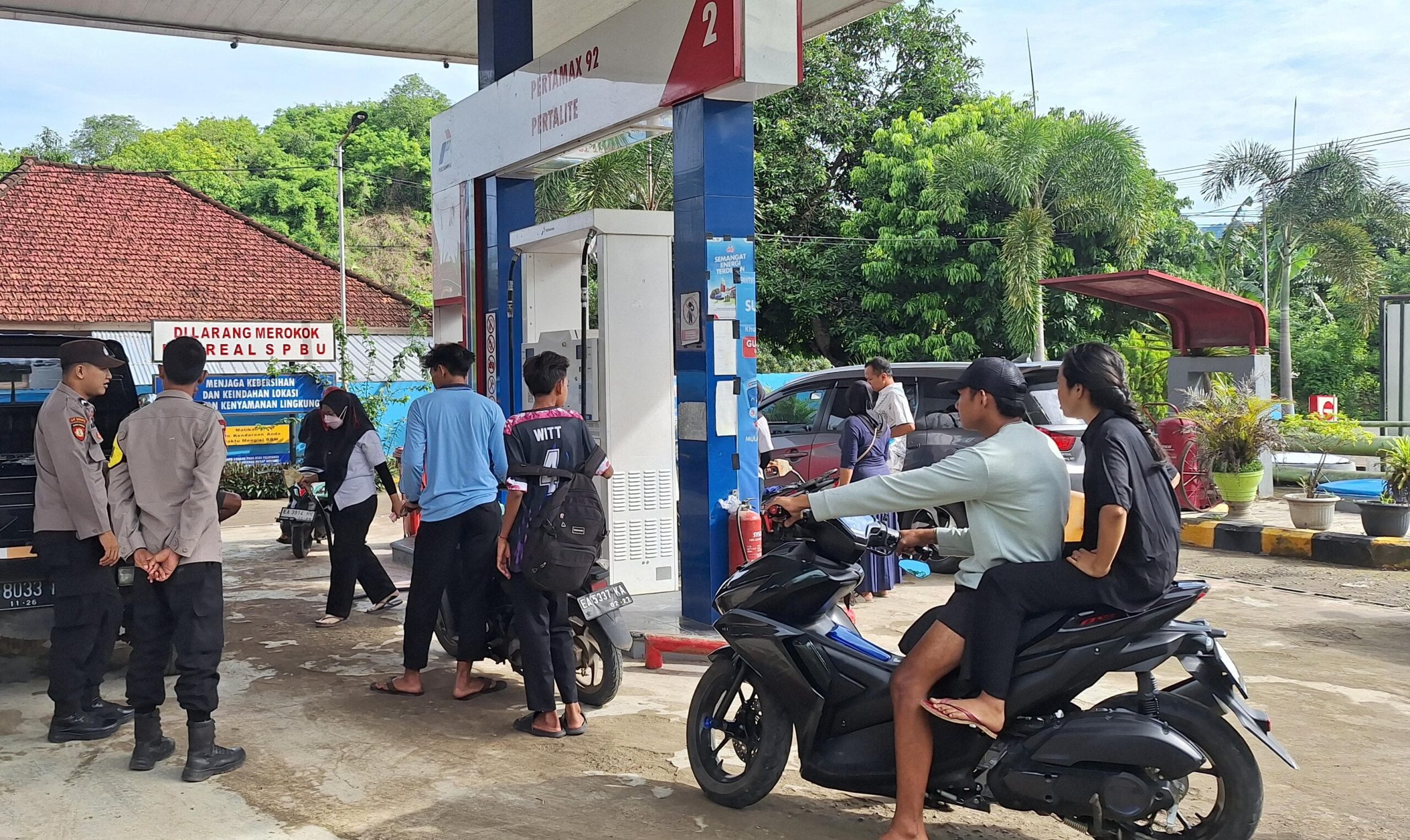 “Anggota Polsek Jereweh melakukan patroli dialogis menyasar ke SPBU da melakukan koordinasi dengan pengelola SPBU untuk meyakinkan bahwa ketersediaan BBM untuk masyarakat masih aman mengingat saat ini masih suasana libur panjang dan perlu diantisipasi kebutuhan BBM untuk masyarakat dan kendaraan umum masih tercukupi sehingga transportasi masih aman dan kondusif” ujar Kapolres Sumbawa Barat, AKBP Yasmara Harahap, S.I.K., melalui Kasi humas AKP Zainal Abidin, S.H.