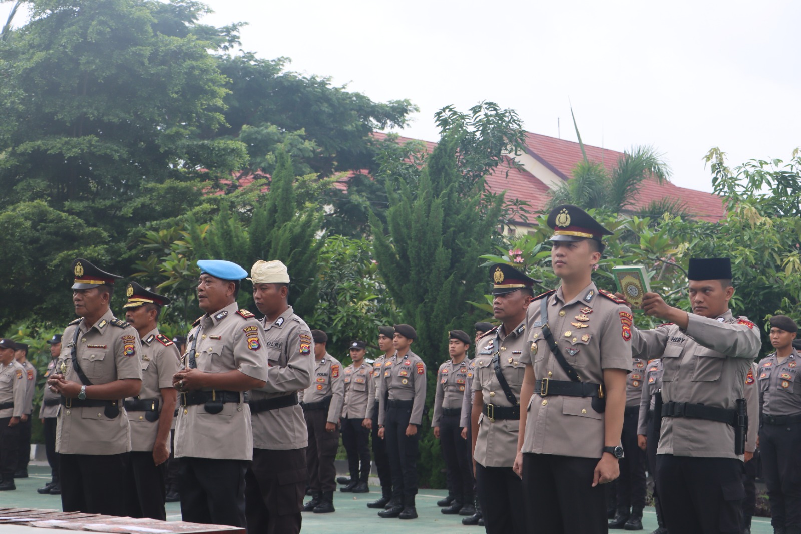 Kegiatan Sertijab di ikuti seluruh pejabat utama (PJU) Polres, Personil Polres satuan Fungsi dan Bhayangkari.