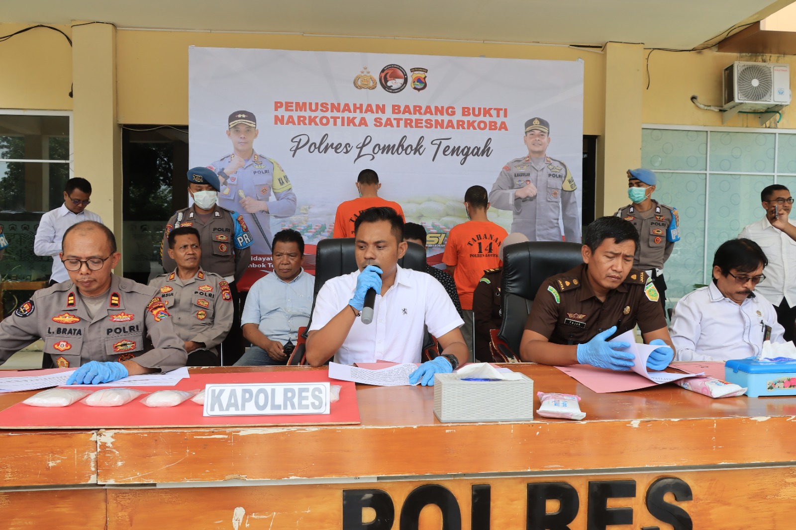 “jadi total yang dimusnahkan seberat 992,15 gram sedangkan sisa 0,07 gram dan 0,10 gram untuk kepentingan uji laboratorium dan persidangan,” kata Fedy saat Konferensi Pers pemusnahan barang bukti, di Praya, Senin (3/2).