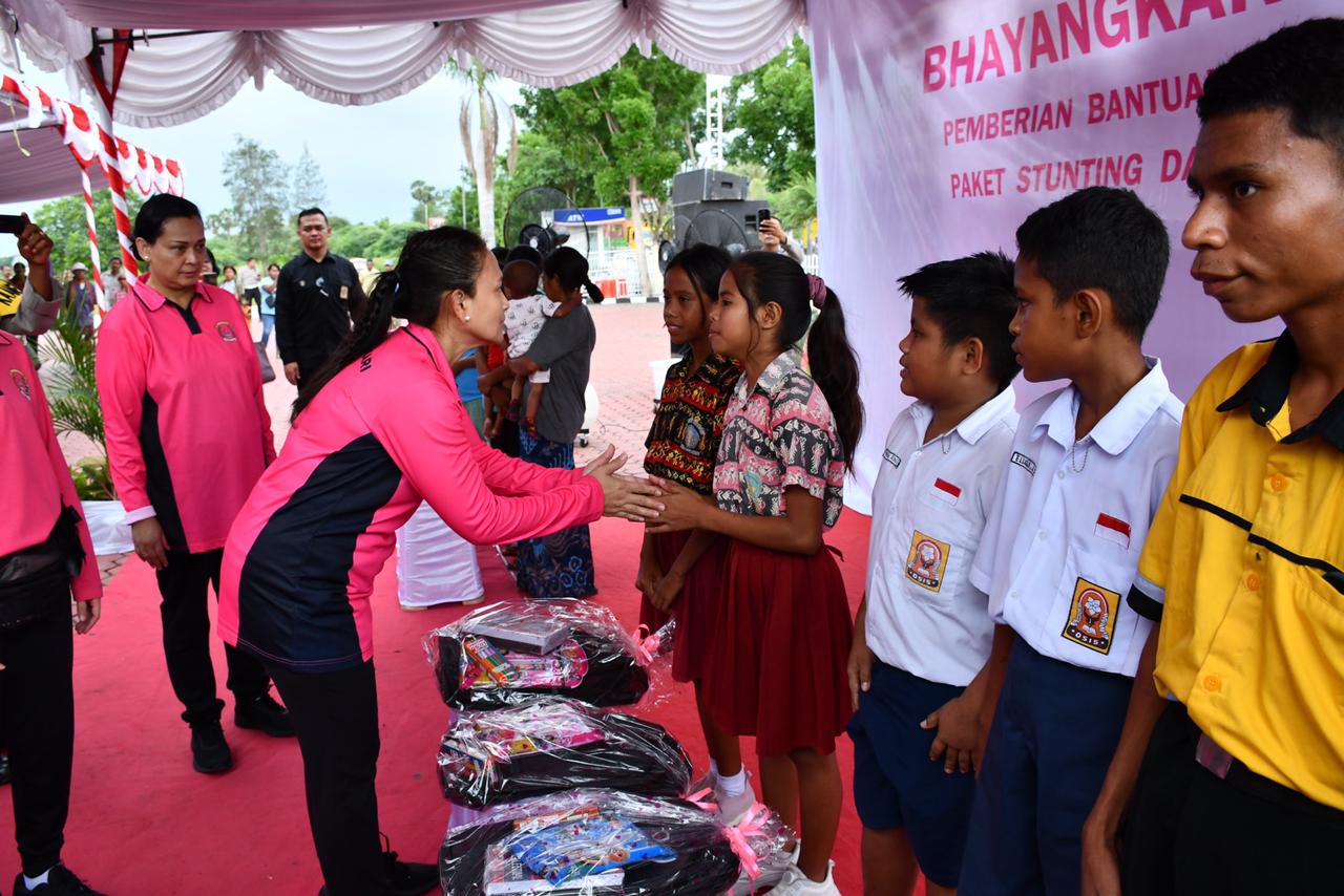 Dalam kesempatan tersebut, Ketua Umum Bhayangkari memberikan bantuan sosial berupa paket sembako, paket stunting, dan paket sekolah yang ditujukan untuk masyarakat kurang mampu di wilayah tersebut.