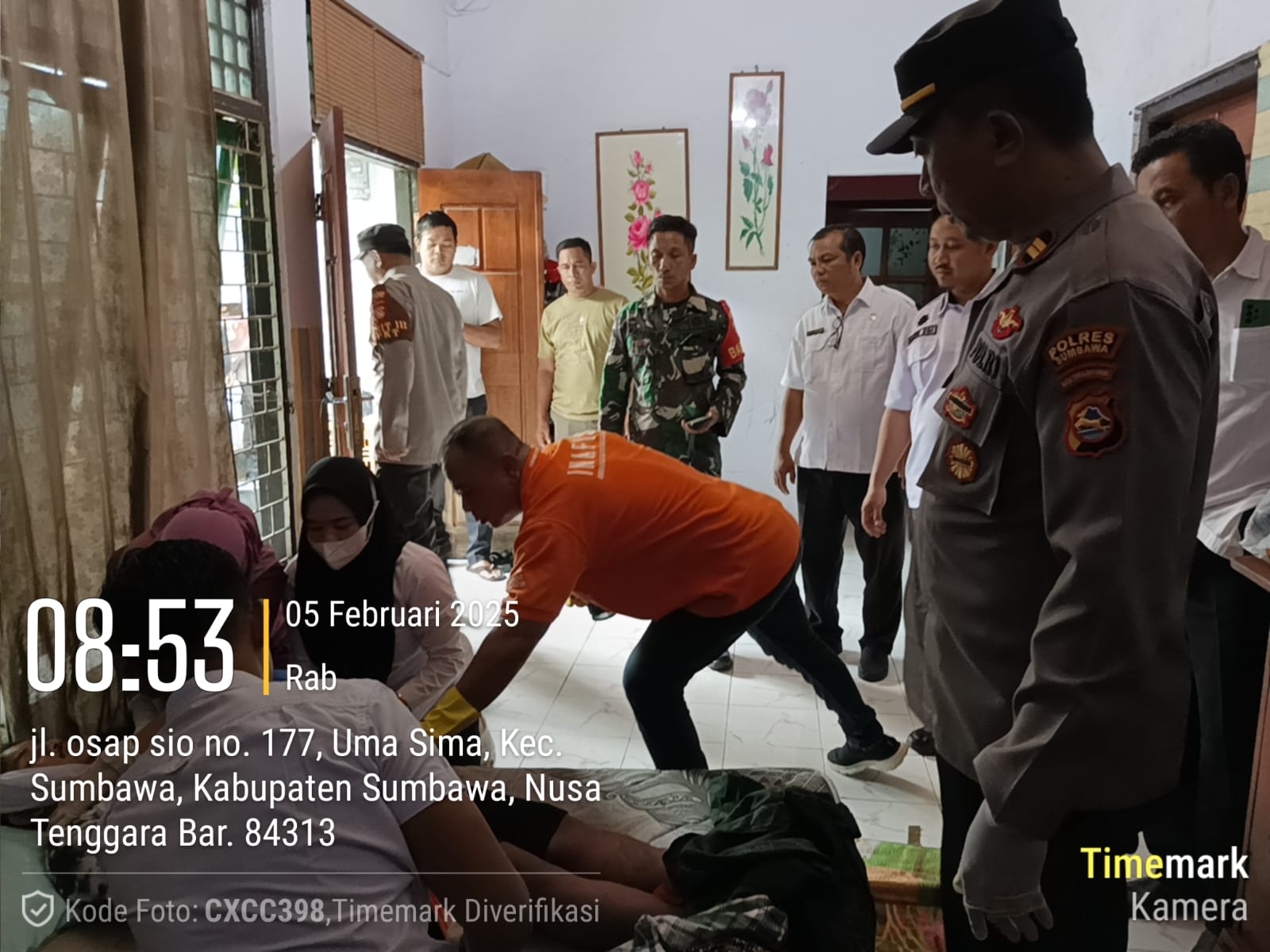 Sumbawa Besar-NTB, Personel Polres Sumbawa dan Polsek Sumbawa melakukan olah TKP awal peristiwa penemuan mayat pria di Kelurahan Uma Sima Kecamatan Sumbawa, Rabu (5/3/2025) 06.30 Wita.