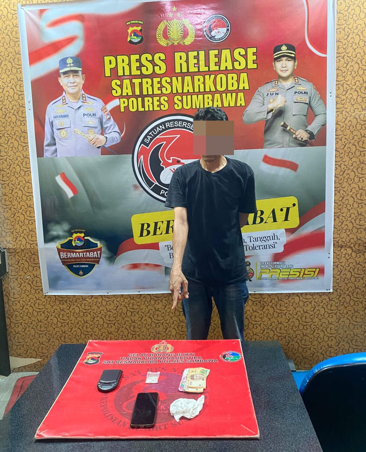 Kapolres Sumbawa AKBP Bagus Nyoman Gede Junaedi S.H, S.IK, M.AP., saat dikonfirmasi melalui Kasat Narkoba AKP Tamrin S.Sos., mengungkapkan bahwa “penangkapan tersebut berdasarkan informasi dari masyarakat yang resah dengan aktivitas jual beli narkotika di wilayah tersebut.” terang Kasat.