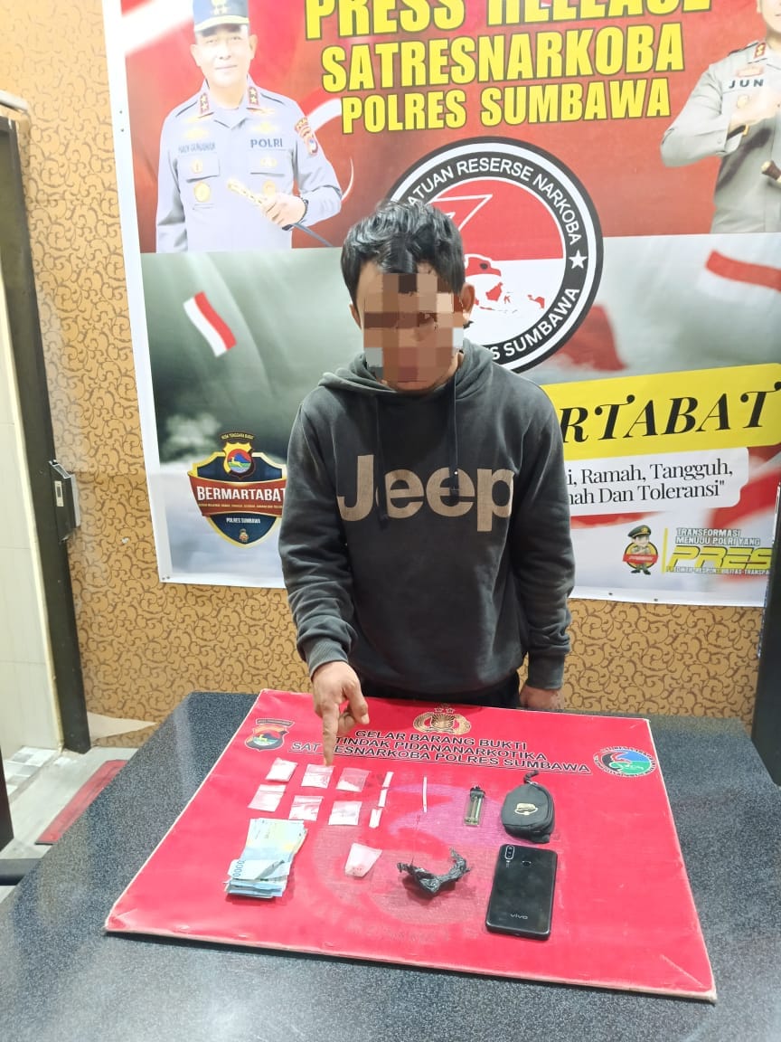 Sumbawa Besar–NTB, Personel Satuan Reserse Narkoba (Sat Resnarkoba) Polres Sumbawa berhasil meringkus seorang pria berinisial N (41), warga Kecamatan Buer, yang diduga sebagai pelaku tindak pidana penyalahgunaan narkotika.