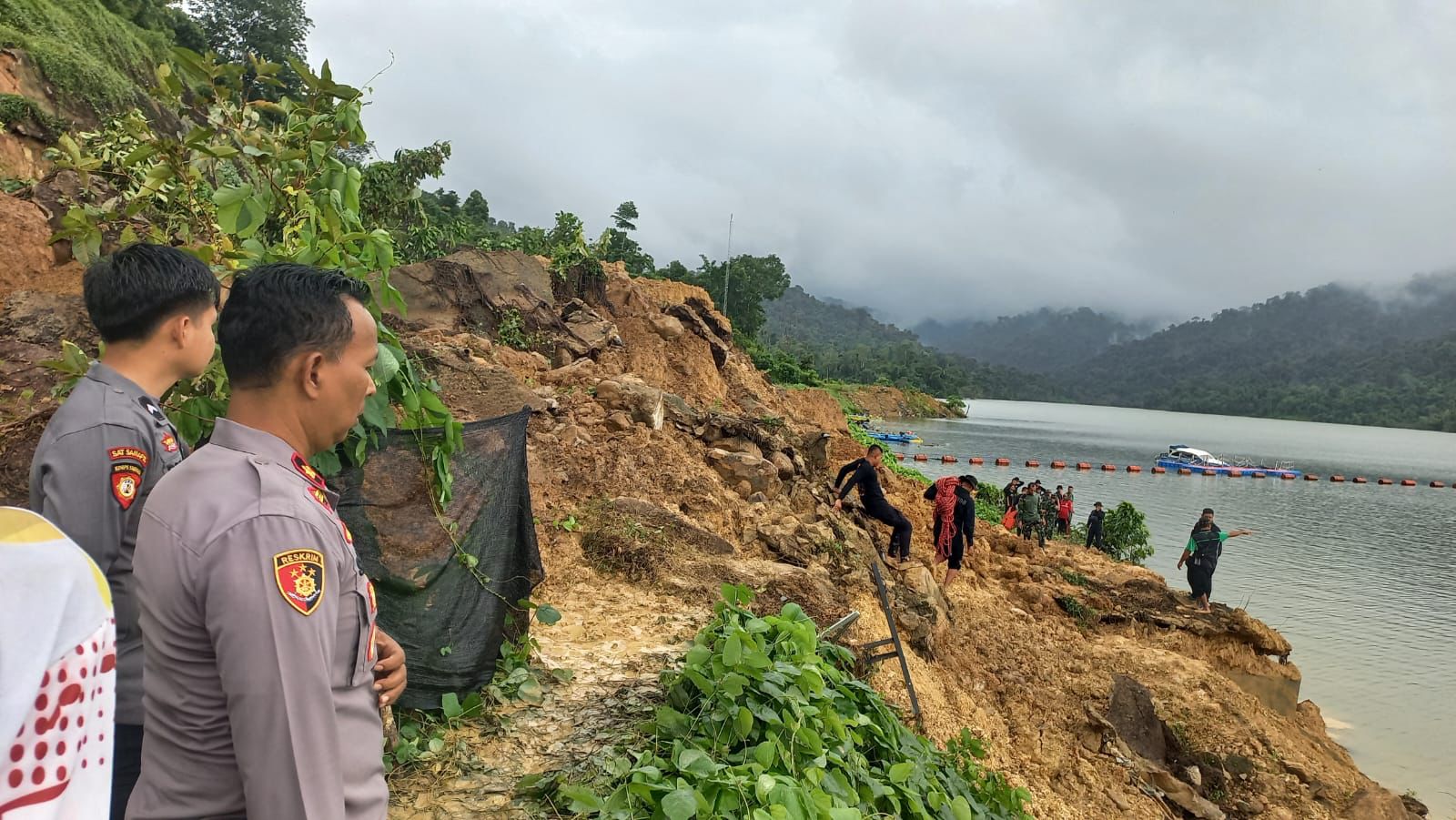 Dalam pencarian korban telah dikerahkan satu unit excavator untuk melakukan pencarian korban hingga pukul 18.00 WITA korban belum ditemukan, sementara pencarian akan dilanjutkan besok pagi.