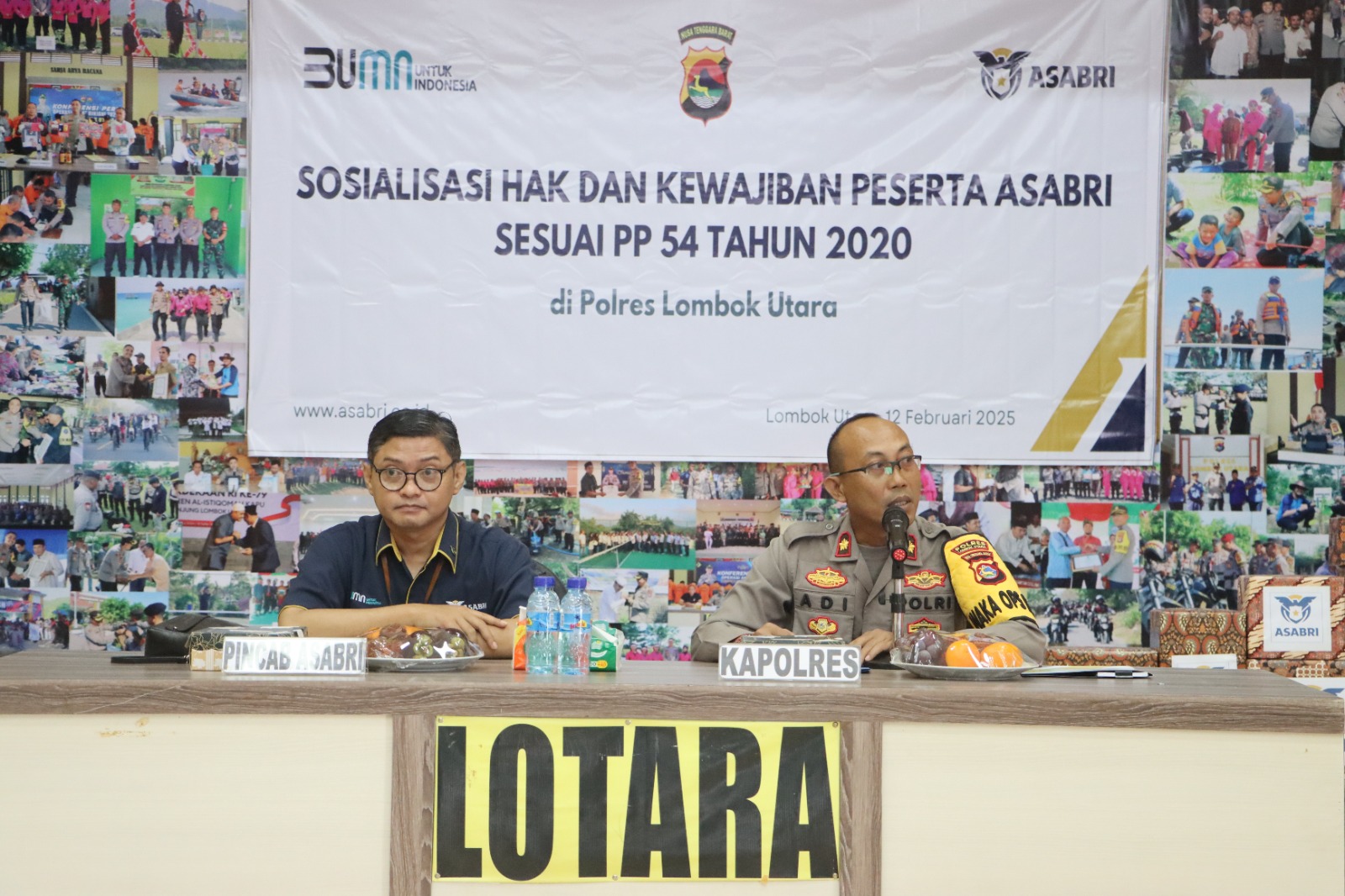 Lombok Utara – Asabri melaksanakan kunjungan ke Polres Lombok Utara guna melakukan sosialisasi hak dan kewajiban peserta Asabri yang berdasarkan peraturan pemerintah (PP) Nomor 54 tahun 2020, pada hari Kamis, 12 Februari 2025.