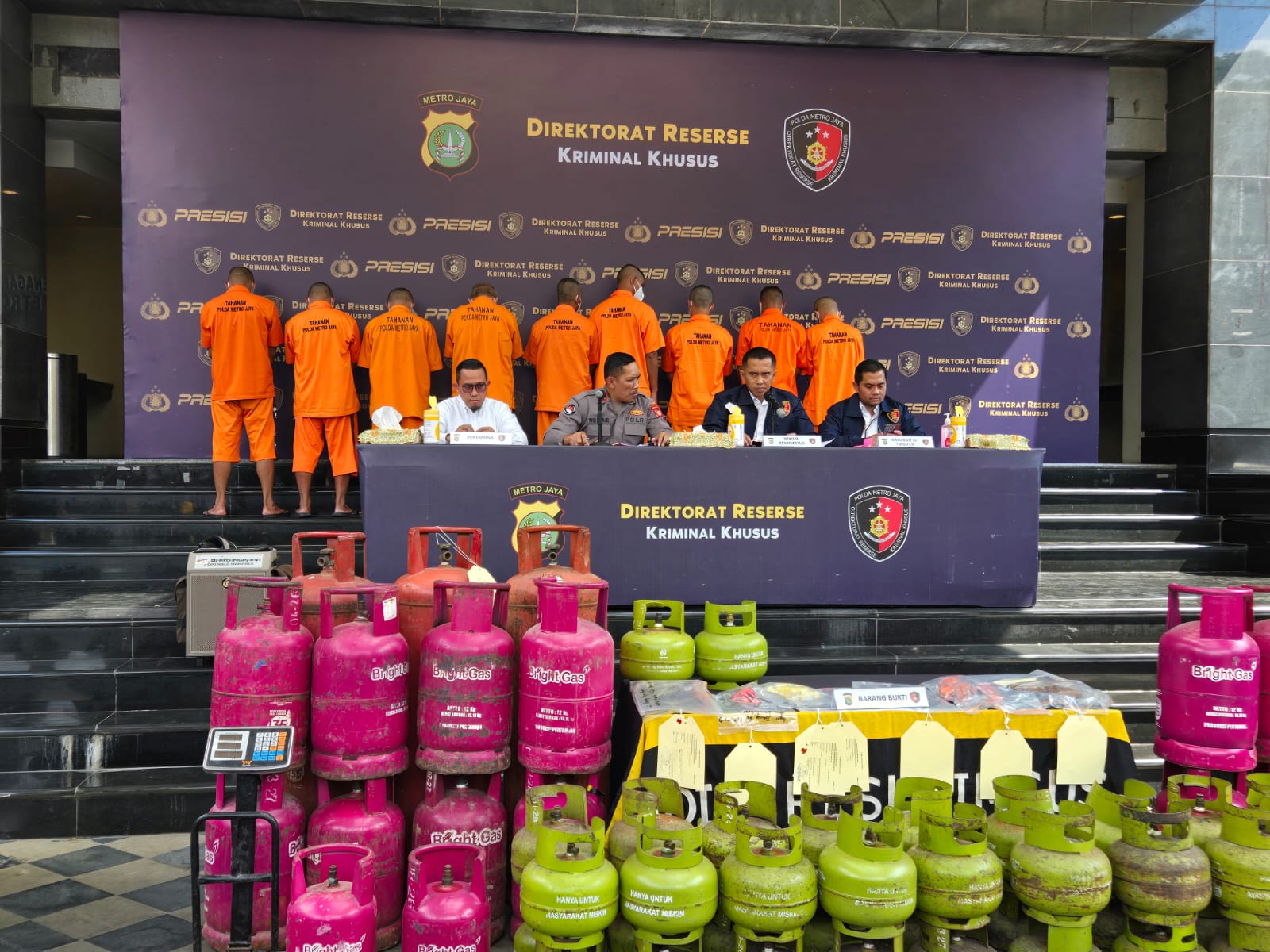 Jakarta, Penyidik Direktorat Reserse Kriminal Khusus (Ditreskrimsus) Polda Metro Jaya mengungkap kasus pengoplosan gas elpiji di daerah Bekasi, Jakarta Selatan, dan Jakarta Barat.