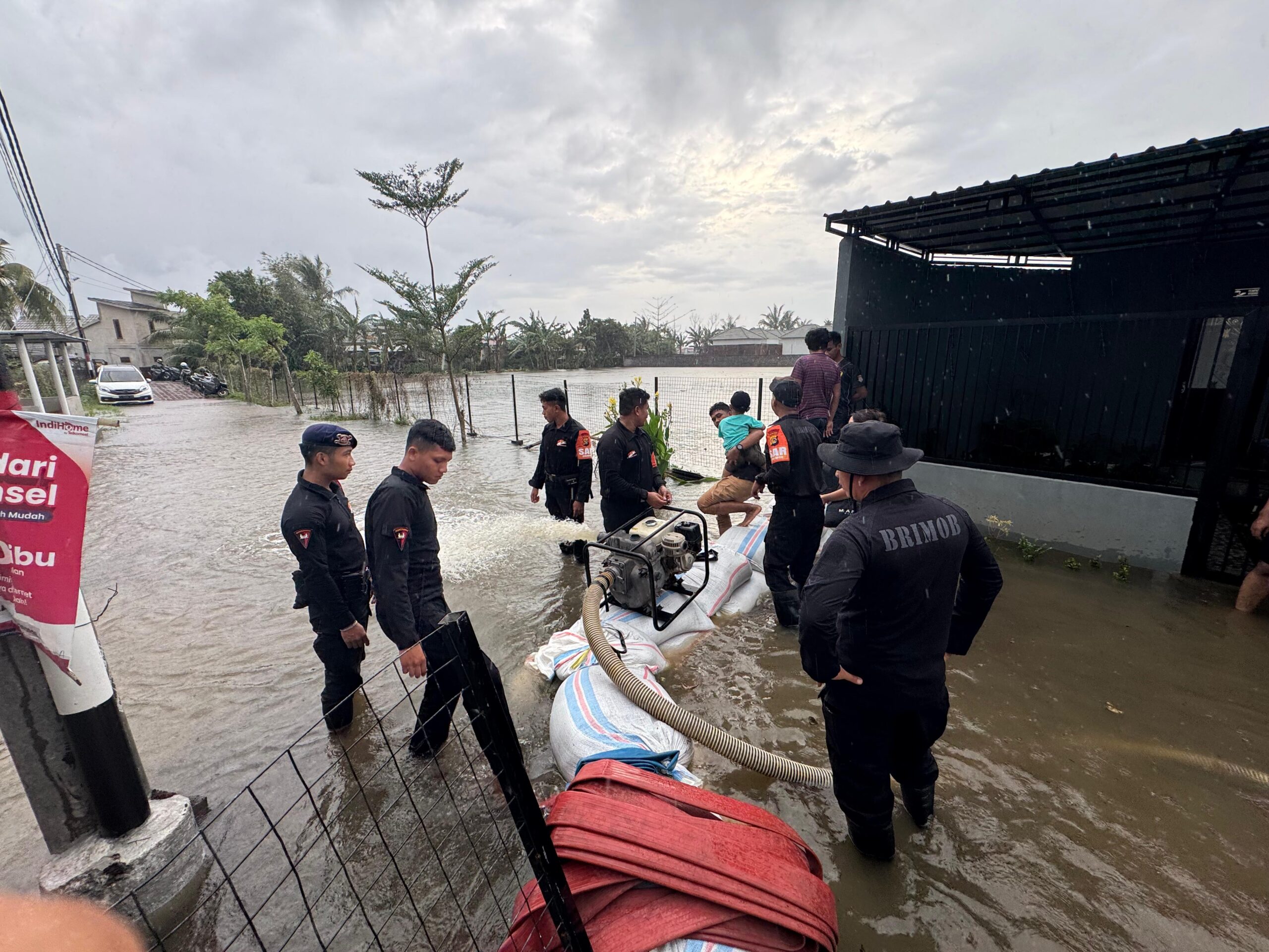Selain membantu warga menyelamatkan harta benda ke lokasi yang lebih tinggi, personel Brimob juga memastikan keselamatan warga yang terdampak, agar tidak terjadi hal-hal yang tidak diinginkan akibat tingginya genangan air.