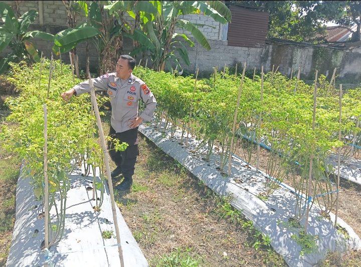 Ps. Kanit Binmas, M. Wahid Hasyim, turun langsung ke lokasi untuk melakukan pengecekan terhadap kondisi tanaman cabai rawit milik warga. Dalam kegiatan tersebut, ia memastikan bahwa tanaman yang dibudidayakan masyarakat dalam kondisi baik serta mendukung upaya ketahanan pangan di wilayah setempat.